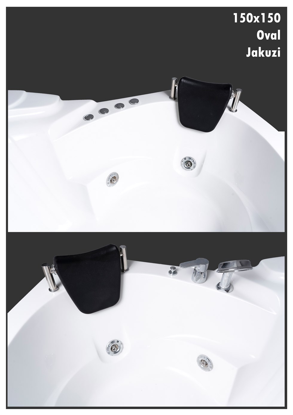Fakat tasarım olarak sadece kafa yastıklarının yeri değişecektir. Oval jakuzilerde bu durum tam olarak böyle değildir. Yan yana model 3 köşelidir. Yani dikdörtgen benzeri bir şekil olup, bir köşe noktası ovaldir. Karşılıklı olan model ise pasta dilimini andırır. Geniş bir oval kıvrım ve köşeli bir tane kıvrım olarak tasarım karşımıza çıkar. Elbette modelin boyutları da bu bakımdan ikiye ayrılır.