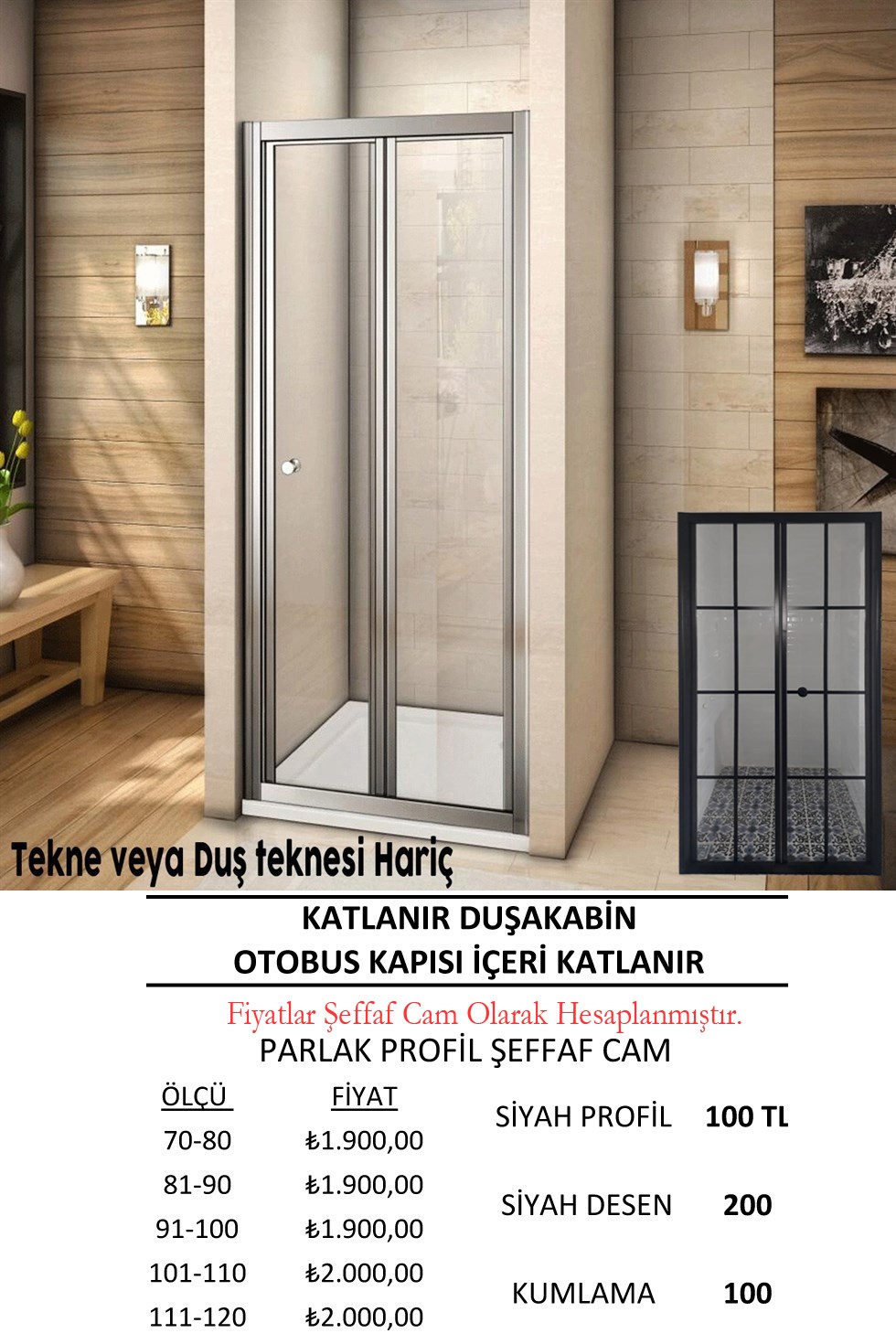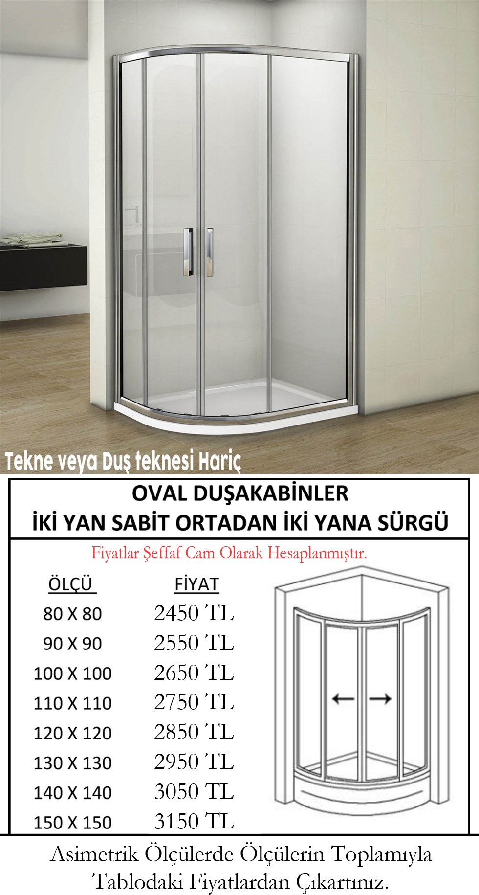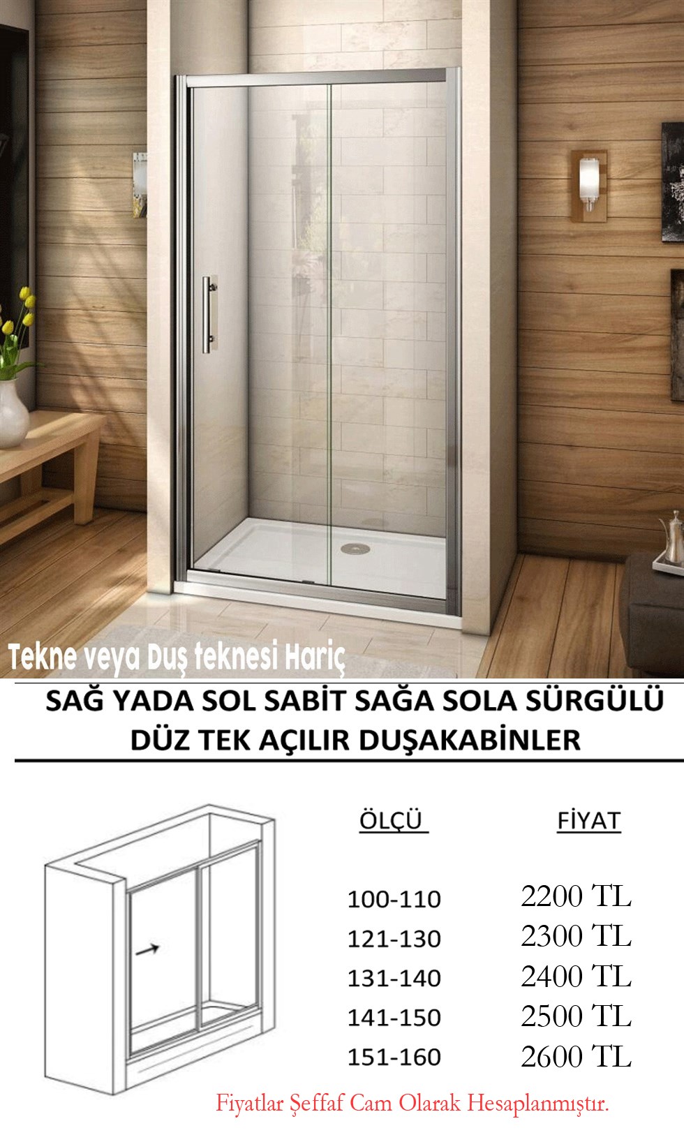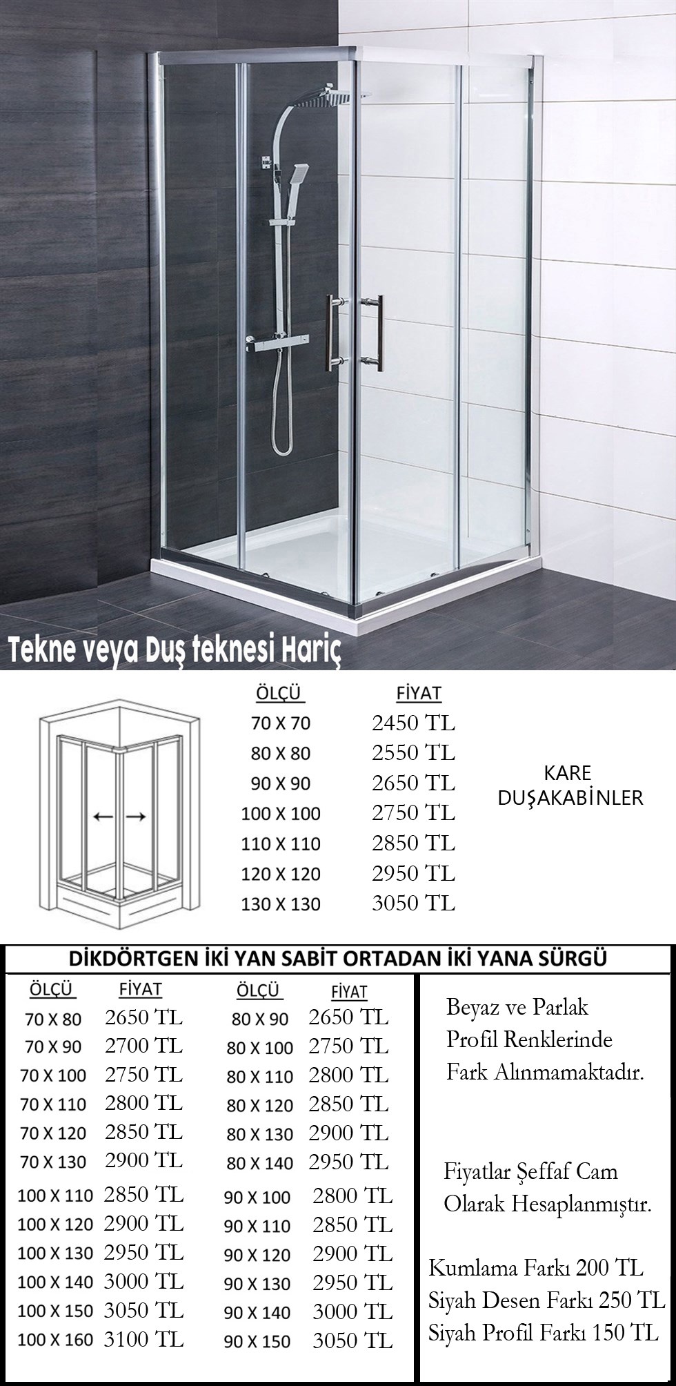 Duşakabinlerimiz Temperli 5 mm Şeffaf Cam Üzerinden Fiyatlandırılmıştır.