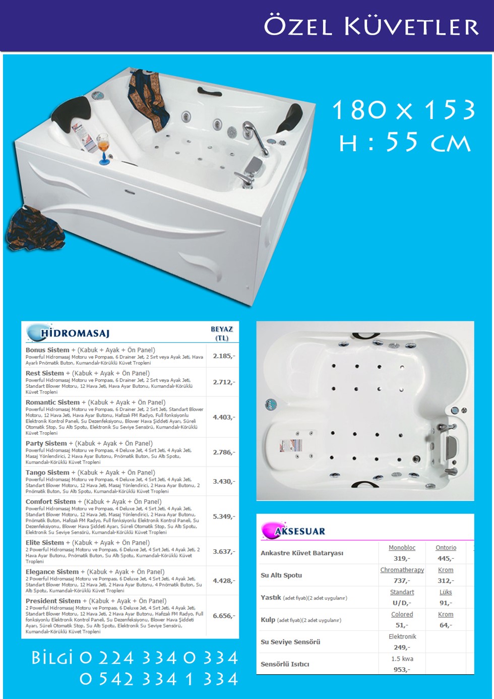 Özel Küvetler 180×153 H : 55 cm